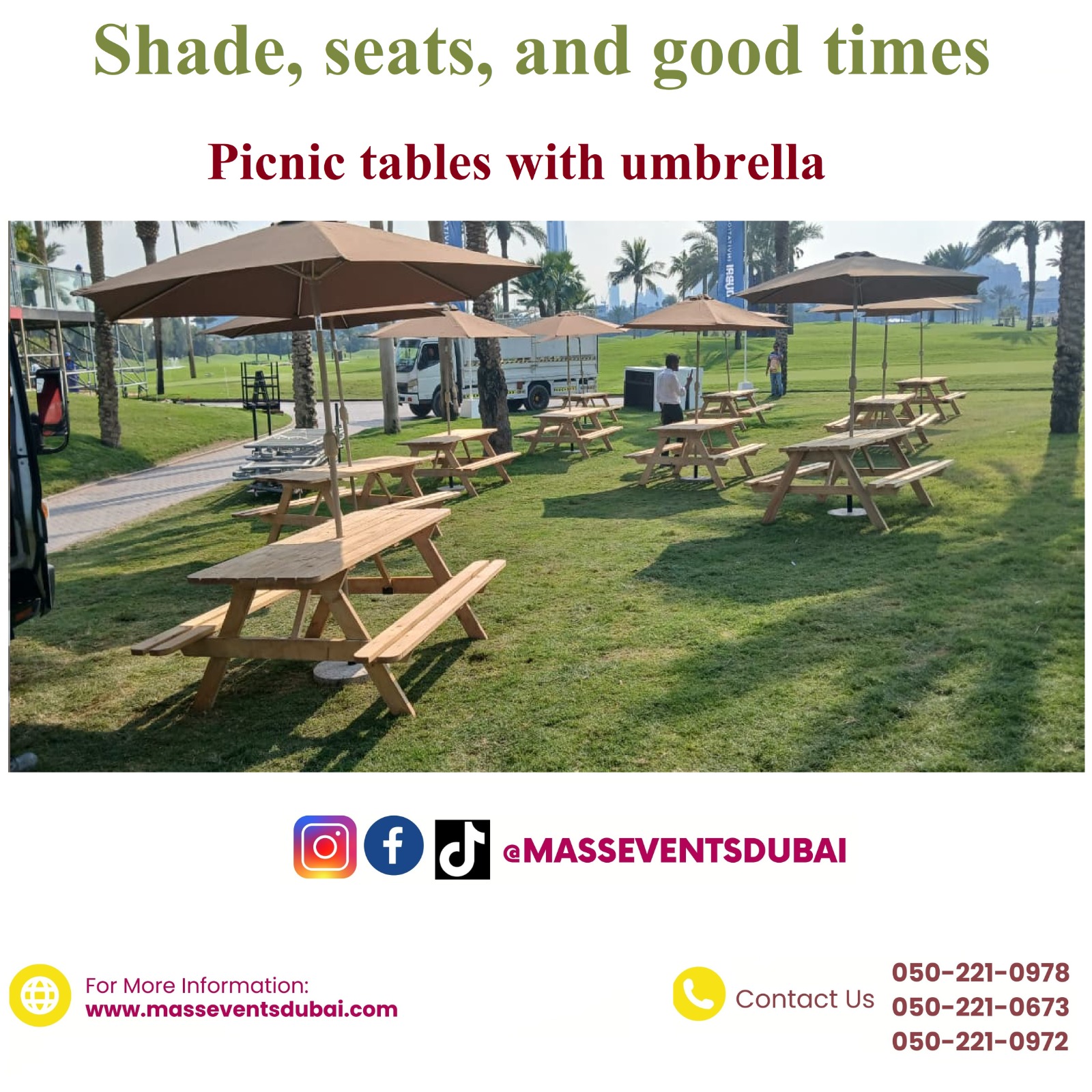 As the best event rental in Dubai, Mass Events provide you premium quality furniture for your exceptional experience. Our dedicated team ensure professional setup and timely delivery. Since we have amble of event rental options, you can effortlessly select the furniture for your events. Mass Events gives you reliable services and affordable packages all across UAE. all across UAE. For more details, please connect with us https://wa.me/971502210978